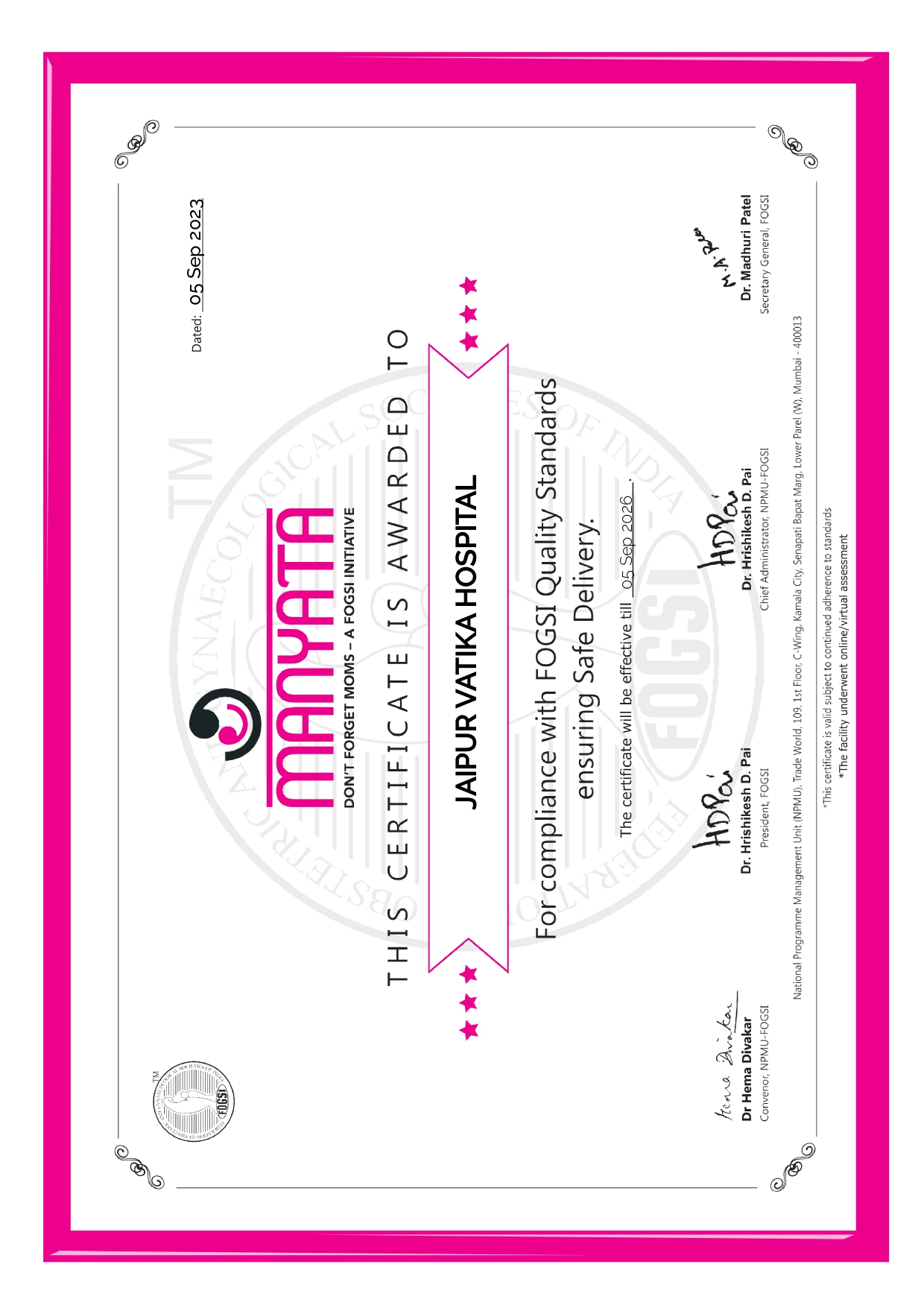 We take immense pride in being a Manyata Certified Hospital. This prestigious certification is a testament to our unwavering dedication to Safe Motherhood and excellence in maternity services.